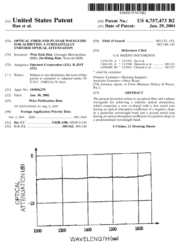 특허 | (미국) Optical fiber and planar waveguide for achieving a substantially …