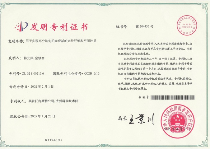 특허 | (중국) Optical fiber and planar waveguide for achieving a substantially …
