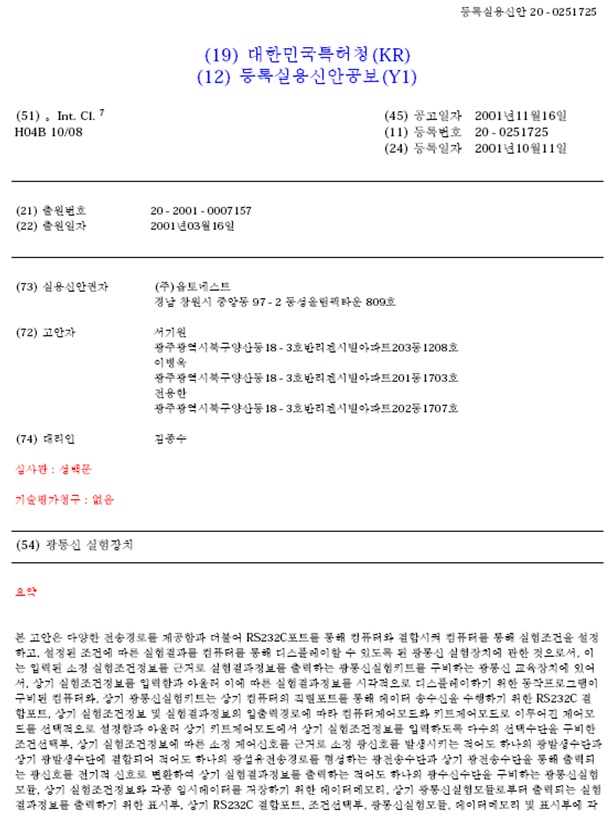 특허 | (대한민국) 광통신 실험장치 페이지 정보 작성자 관리자 작성일11-08-05 21:14 조회20,682회 댓글0건 관련링크 이전글 다음글 목록 본문 (대한민국) 광통신 실험장치 댓글목록 등록된 댓글이 없습니다. 이전글 다음글 목록