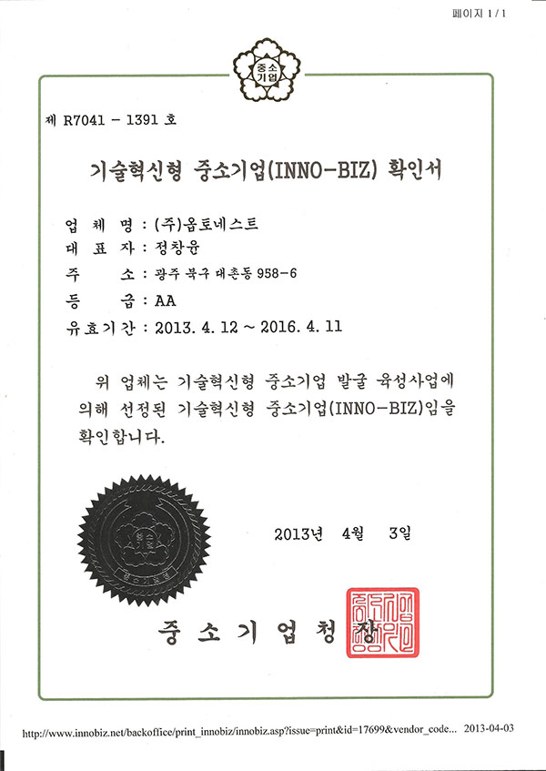 인증 | 기술혁신형 중소기업(INNO-Biz)확인서 페이지 정보 작성자 관리자 작성일13-05-23 09:29 조회21,493회 댓글0건 관련링크 이전글 다음글 목록 본문 기술혁신형 중소기업(INNO-Biz)확인서 댓글목록 등록된 댓글이 없습니다. 이전글 다음글 목록